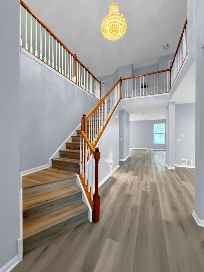 Stunning Pond-View Retreat in Bolingbrook - Fully Updated & Move-In Ready! Welcome to this breathtaking 4-bedroom, 4.5-bathroom masterpiece, perfectly situated to offer serene pond views and high-end elegance. Every inch of this home has been thoughtfully refreshed, combining modern luxury with functional design. Home Highlights: Modern Interiors: Step onto brand-new LVP flooring that flows through a freshly painted interior. The grand two-story foyer, anchored by a dazzling crystal chandelier, creates an unforgettable first impression. Gourmet Kitchen: Features refinished cabinetry, sleek new quartz countertops, and a full suite of brand-new stainless steel appliances. Spacious Living: Enjoy an airy feel with 9' ceilings on the main level. A private main-floor office provides the perfect sanctuary for remote work or study. Luxury Bedrooms: The upper level boasts a generous loft and four oversized bedrooms. The addition of a second master bathroom ensures maximum comfort and convenience for family or guests. Endless Potential: The basement features 9' ceilings and exposed windows for natural light, with a bathroom already in place to simplify your future finishing touches. Exterior & Parking: A 3-car garage is complemented by a widened driveway (extended by 6 ft) to accommodate plenty of guests. The main level is designed for effortless entertaining, featuring a built-in surround sound system that flows through the living and dining areas-perfect for hosting elegant dinner parties or cozy movie nights against the backdrop of the pond. Rest easy knowing the roof was fully replaced in June 2022. Located in the heart of Bolingbrook, this home offers the perfect blend of style, space, and tranquil scenery. Walk distance to village park district center with state-of-the-art facilities to enjoy a wide range of fun-filled activities. Don't miss your chance to own this turn-key gem!